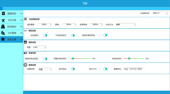 参数设置包括无人机的一些紧急参数设置和基本参数设置。