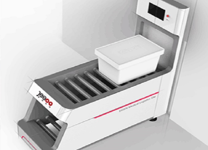 中型箱式物流传输系统是通过搭建楼宇内自动化传输线,以周转箱为载体,将不同楼层区域连接起来,实现楼宇内的物品传输。
