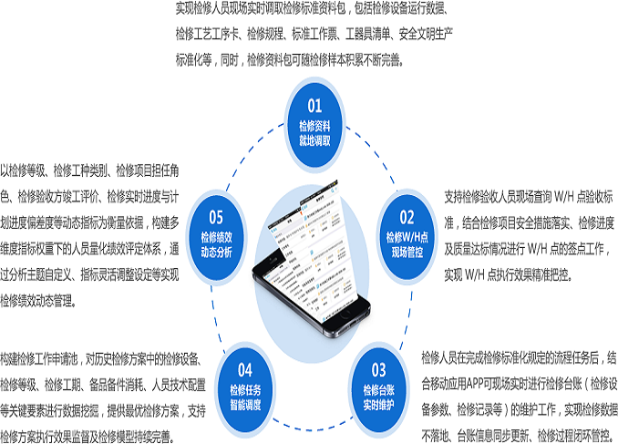 构架本质安全型的检修过程智能管控体系,以检修标准化为核心,结合线上线下交互模式,为设备检修提供多维度的指导支持,对发电设备维护和检修过程各环节进行科学化、标准化的管理,对检修工艺、流程、人员安排不断优化提升,奠定安全文明生产标准化基础。
