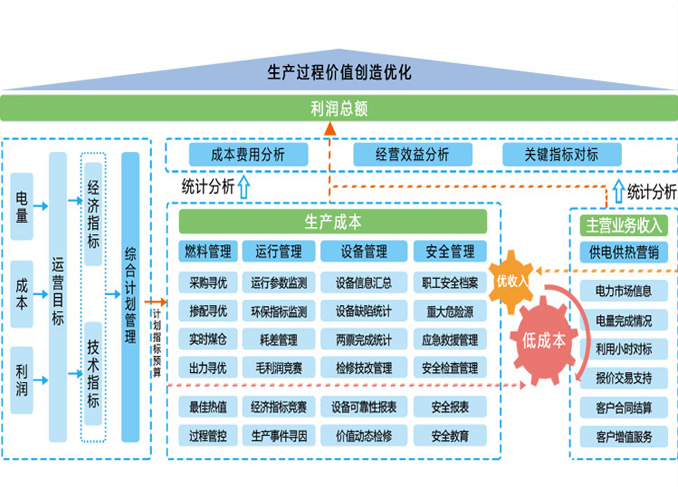 •     以智慧燃料为主线,以全过程指导为动力,分析电厂燃料全流程“购、卸、存、输、配、送、烧、排”等创造价值的关键控制点,寻找关联各环节的最优指导,构建大燃料全流程一体化智慧管控体系,提供基于模型驱动的智能支持、寻优指导功能,实现燃料全过程管控与全价值寻优。