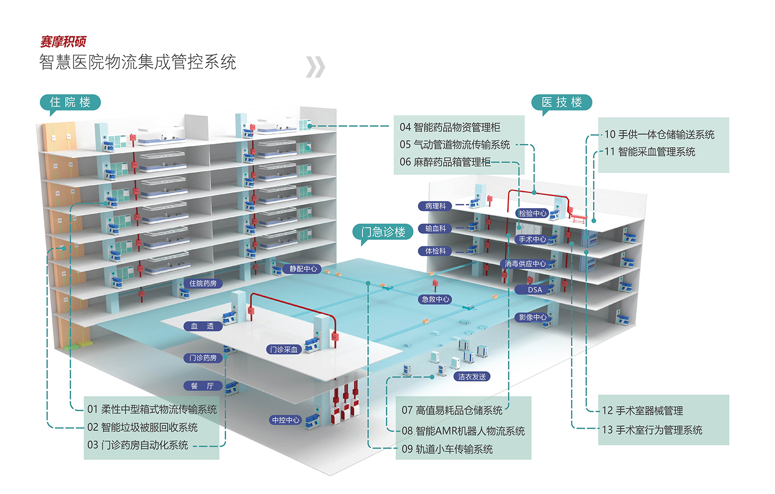 为了解决目前医院面临的困难,需要引入智慧物流系统集成解决方案。6686体育积硕通过对医院物流系统进行规划设计,为医院提供物流系统综合解决方案。智慧物流对现代医院建设的应用价值:提高效率、赢得时间、降低差错、控制成本、优化流程、提升管理、提高医院现代化水平等。